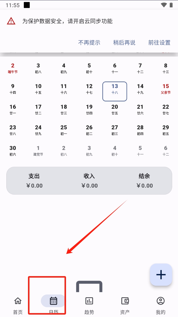 2、点击“日历”按钮,查看按日期分类的账单记录。