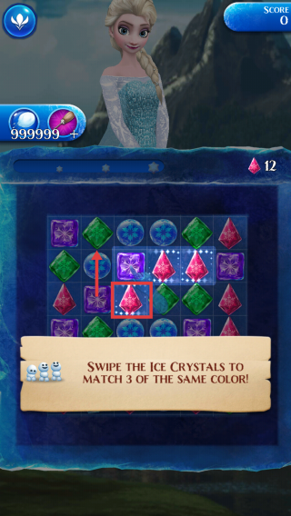 2、划动冰块,让相同颜色的冰块至少3个连在一起,即可消除。