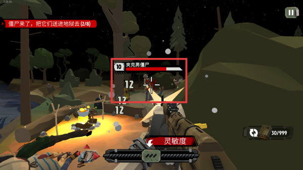 3、移动准星瞄准僵尸会自动攻击,完成左上角任务即可。