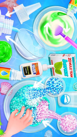 2、制作和玩黏液:拿一个碗,加入胶水、水、泡沫、面粉和彩虹色;