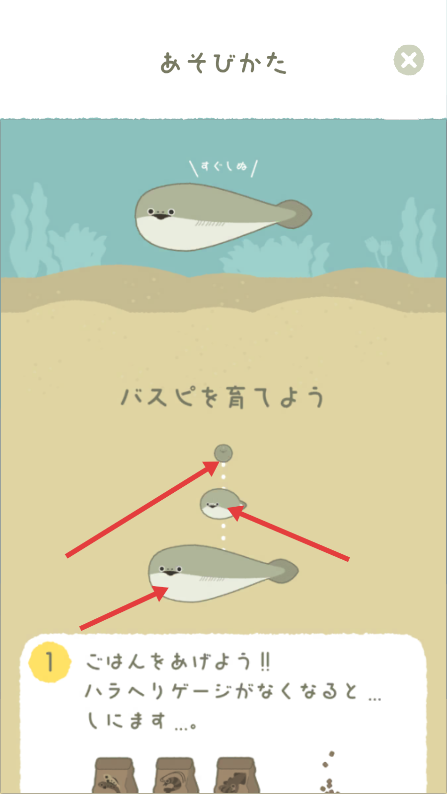 1、按照提示给【バスピ】喂食,注意【ハラヘリゲージ(饥饿值)】,避免其归零导致死亡。