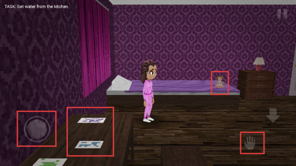 2、进入操控界面后,划动摇杆移动角色,靠近特定物品时,可以点击手掌按键进行互动。