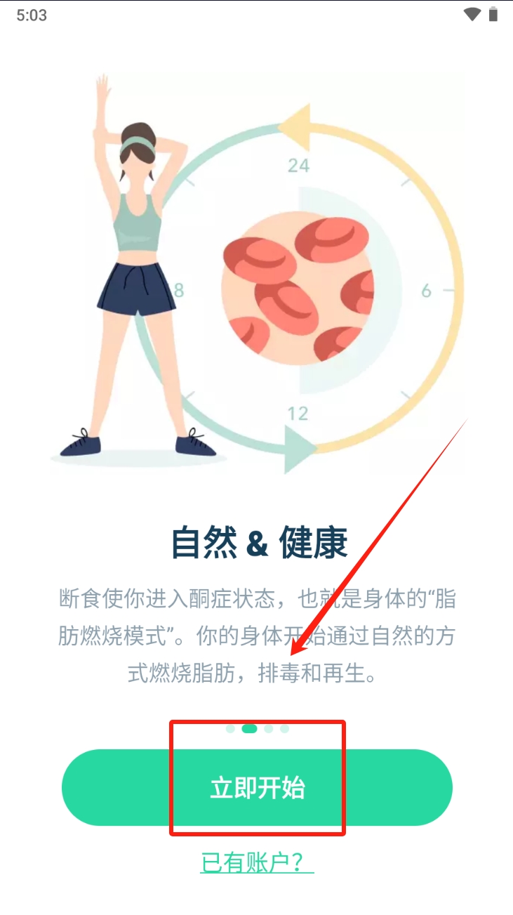 1、点击“立即开始”按钮,进入应用并开始健康之旅。