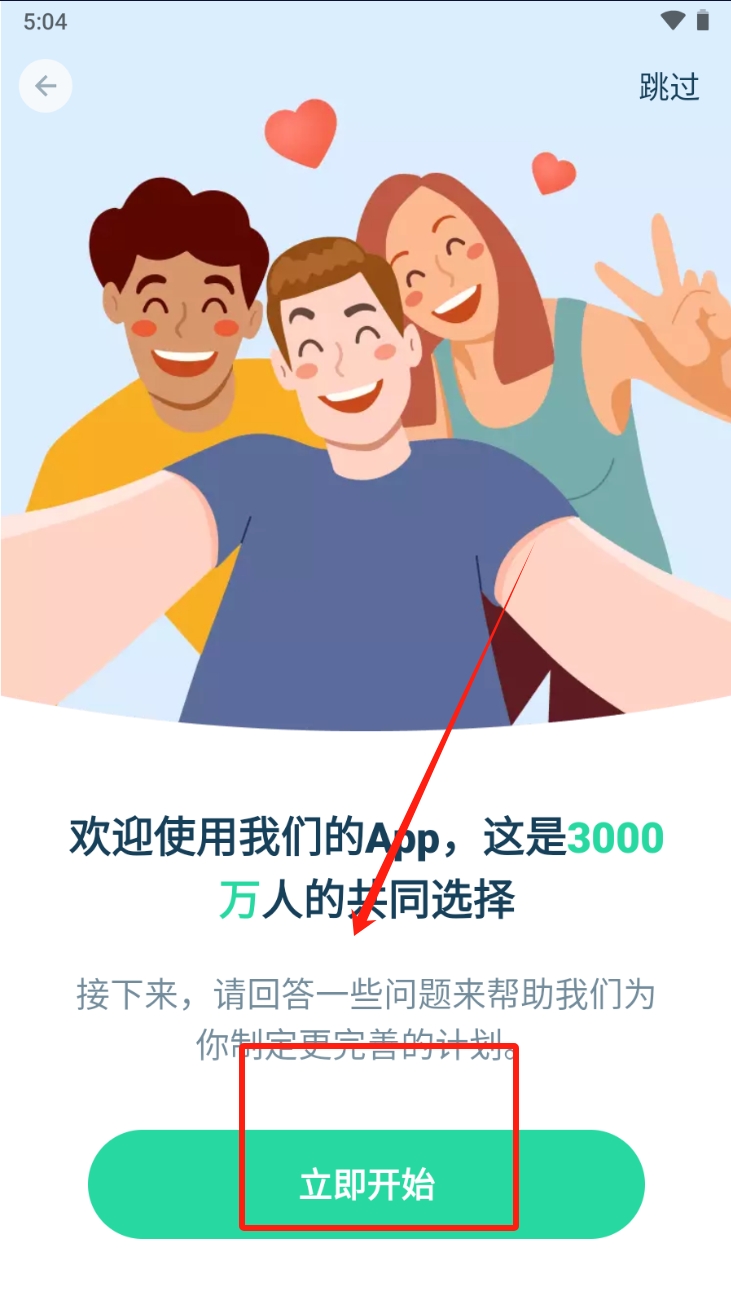 3、阅读欢迎信息,点击“立即开始”以创建个性化计划。