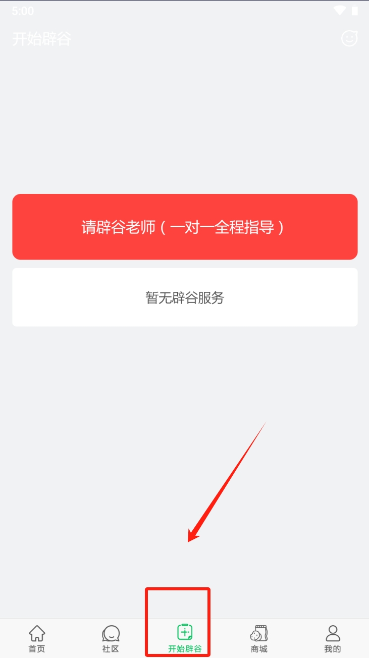 2、点击底部的“开始辟谷”按钮,进入辟谷服务页面。
