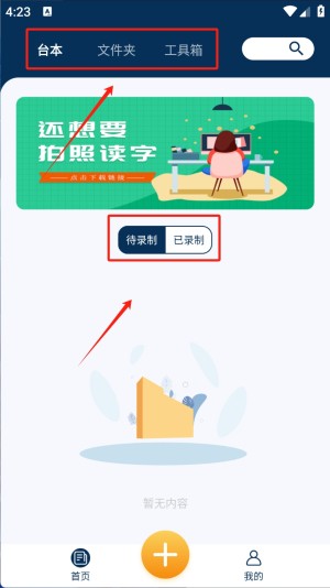 3、然后,返回主界面,点击顶部的“台本”选项卡,进入台本管理页面。