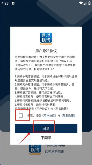 1、用户仔细阅读并同意“用户隐私协议”,点击“同意”按钮以继续。
