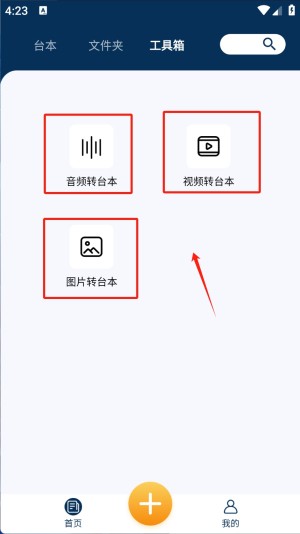 2、打开软件并进入“工具箱”页面,找到并点击“视频转台本”功能。