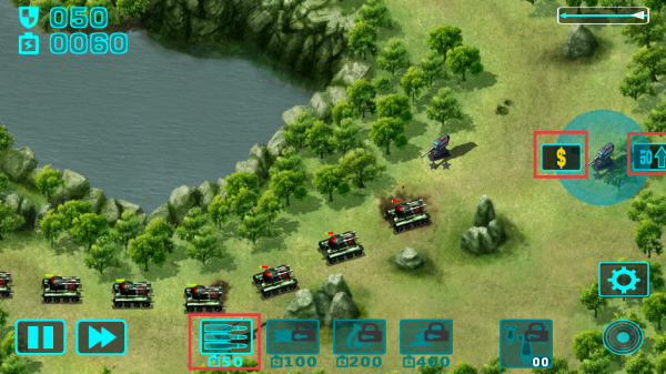 3、点击下方已解锁的坦克,将其放在敌军的必经之路上,再次点击已放置的坦克可以进行售卖和升级。