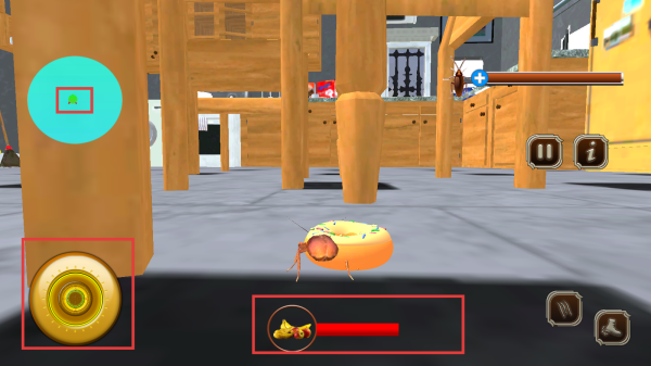 3、观察小地图查看目标方位,划动摇杆控制蟑螂移动到目标食物上,即可进食。