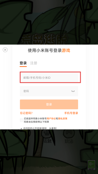1、打开界面,输入【邮箱】、【手机号码】、【小米ID】其中一个账号。