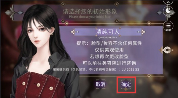 2、选择一个类型的初始形象,完成后点击【确定】。
