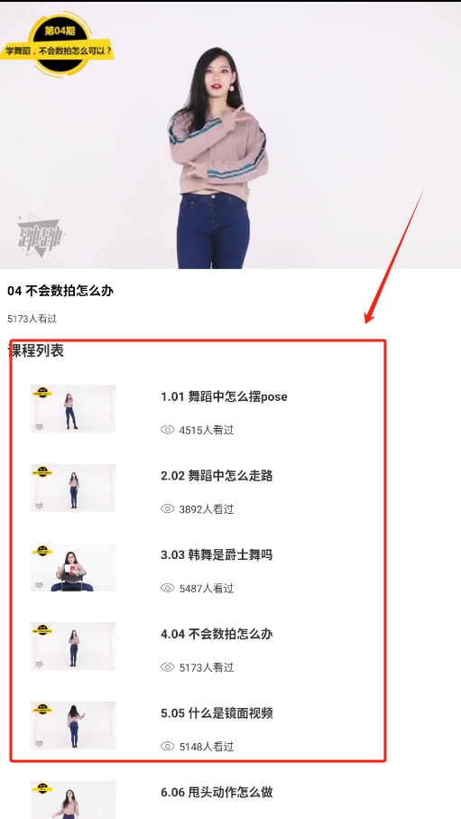 1、进入界面便可浏览各类舞蹈课程,选择适合自己的内容,观看教学视频,按需进行自学,从而获取有效的舞蹈知识。