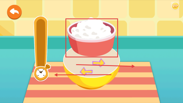 3、按照指示,拖动碗并左右移动筛出面粉。