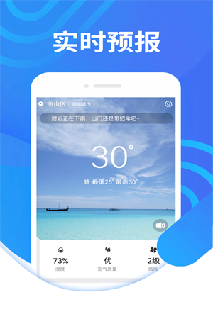 2.具备简洁直观的界面设计、精准的实时天气预报。