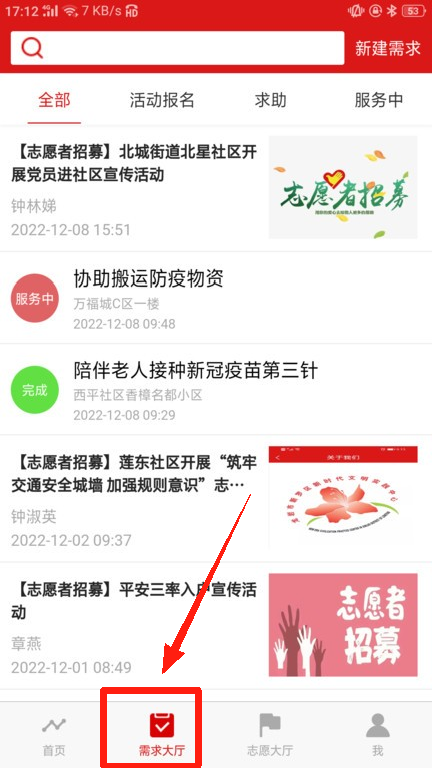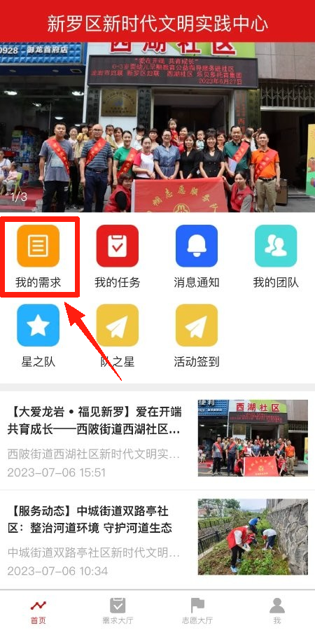 3、在活动详情页面,点击“我的需求”图标,管理您参与的志愿活动和需求。