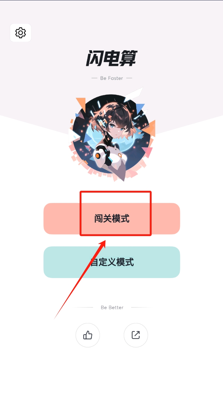 1、在主界面选择“闯关模式”或“自定义模式”进入计算练习。