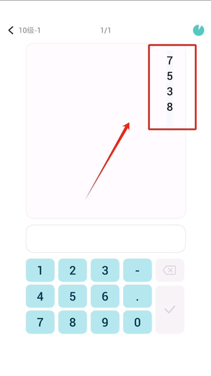 3、在计算界面输入答案,然后点击对勾按钮提交答案。