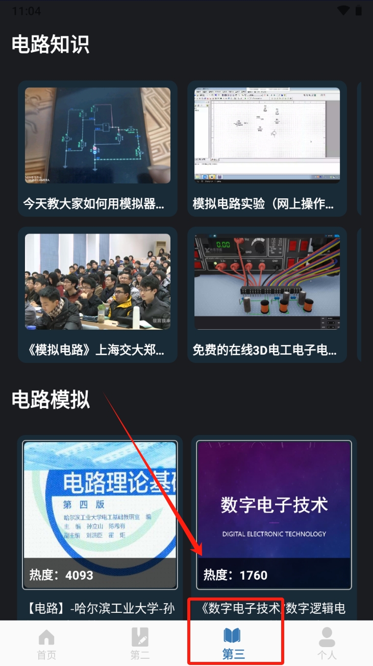 3、在“第三”标签页浏览电路知识文章或视频,提升电路设计能力。