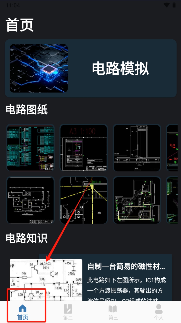 1、在首页选择“电路模拟”或“电路图纸”模块,进入相应的学习内容。