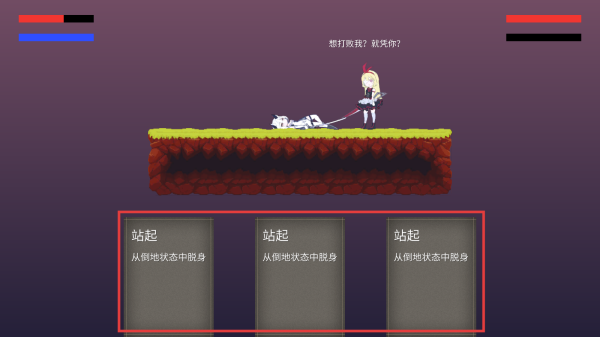3、当被敌方击倒后,任意点击一个【站起】即可恢复站立姿态。