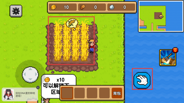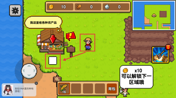 3、移动角色到小屋前,即可将农作物换成货币,解锁新区域。