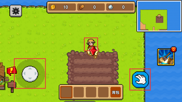 1、打开游戏,拖动摇杆控制角色行走,靠近农田后,点击手势按键即可播种。