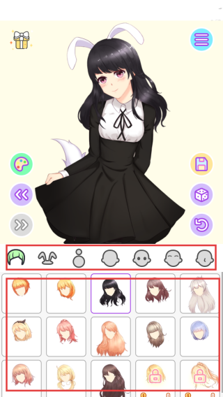 1、自由换装操作:通过简单的操作即可为角色更换衣服和发型,自由搭配出喜欢的洛丽塔造型。