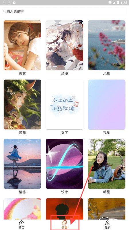 2、也可以点击【分类】寻找喜欢类型的壁纸。
