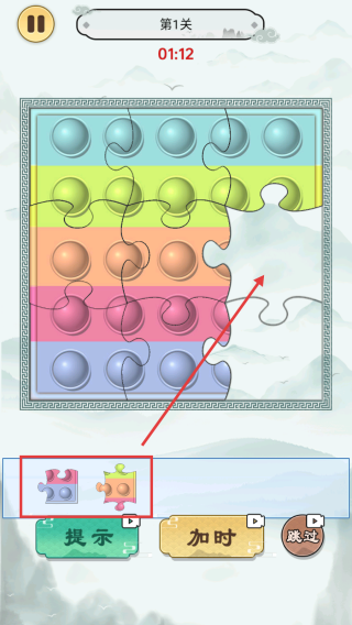 2、拖动下方拼图至对应的空位,即可成功放置。