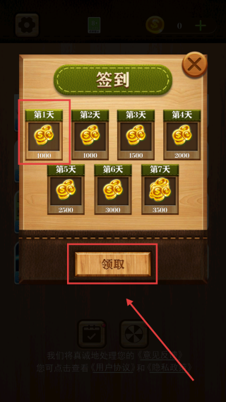 1、打开游戏,点击【领取】就能获得第一天的签到奖励。