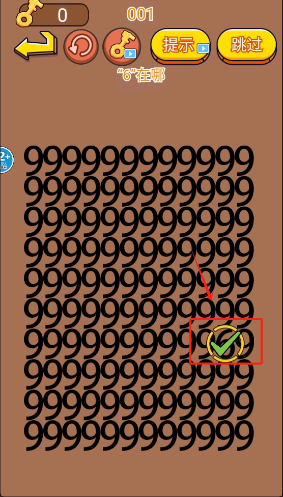 2、在关卡中,仔细观察并找到隐藏的数字“6”,点击它以完成挑战。