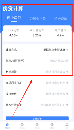 2、在计算页面,输入所需的房贷金额与相关信息,系统会自动生成清晰的还款计划与利息明细。