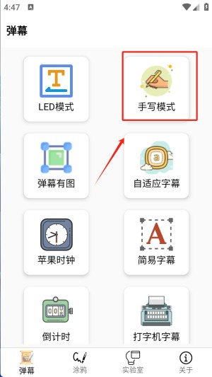1、选择手写模式:在应用中找到并点击“弹幕”选项,然后选择“手写模式”进入手写输入界面。
