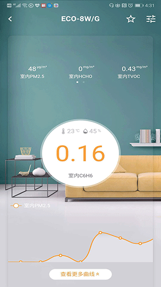 2、查看"24小时趋势图"识别污染规律(如早晚高峰PM2.5攀升),设置智能场景在特定时段提前启动净化设备。
