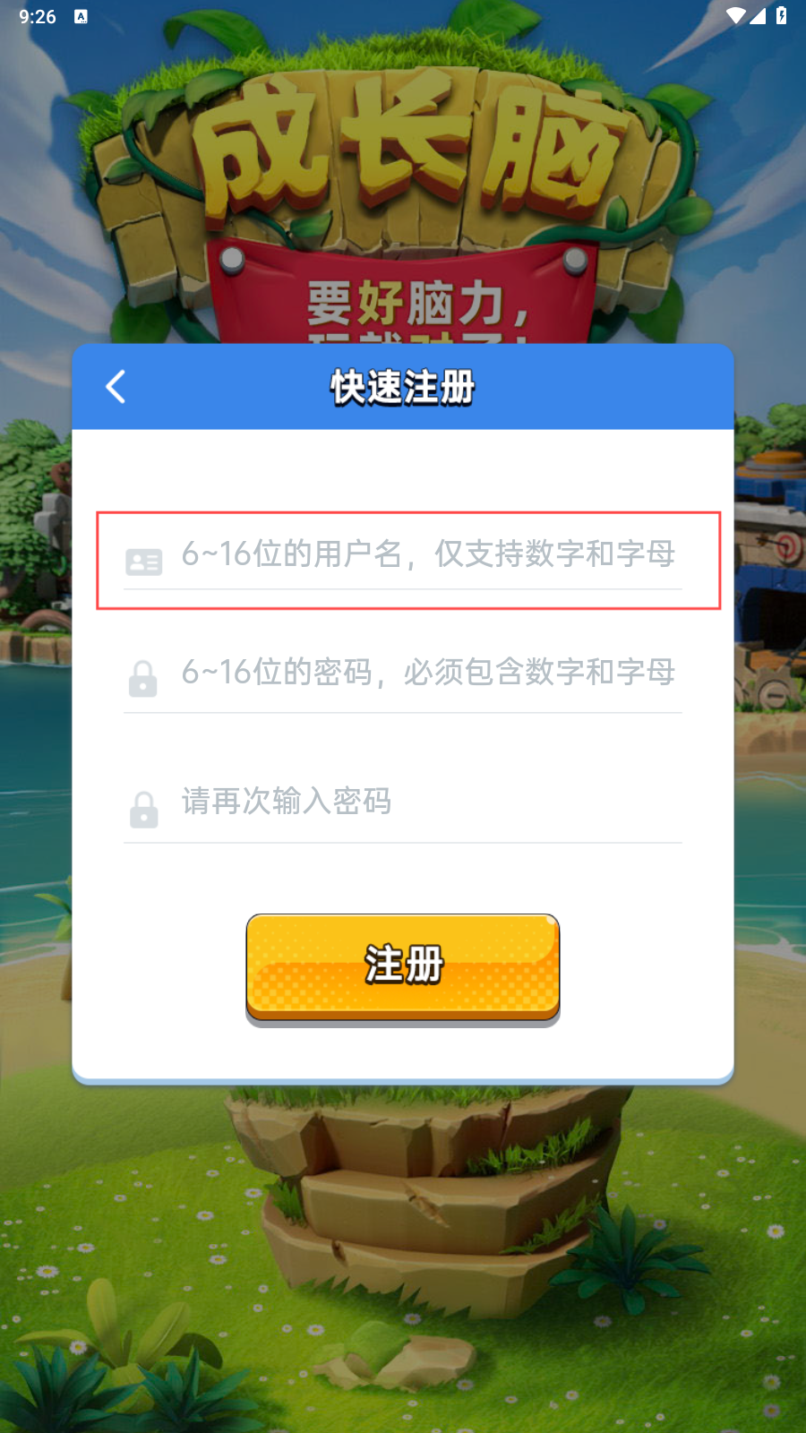 1、填写6到16位的用户名。
