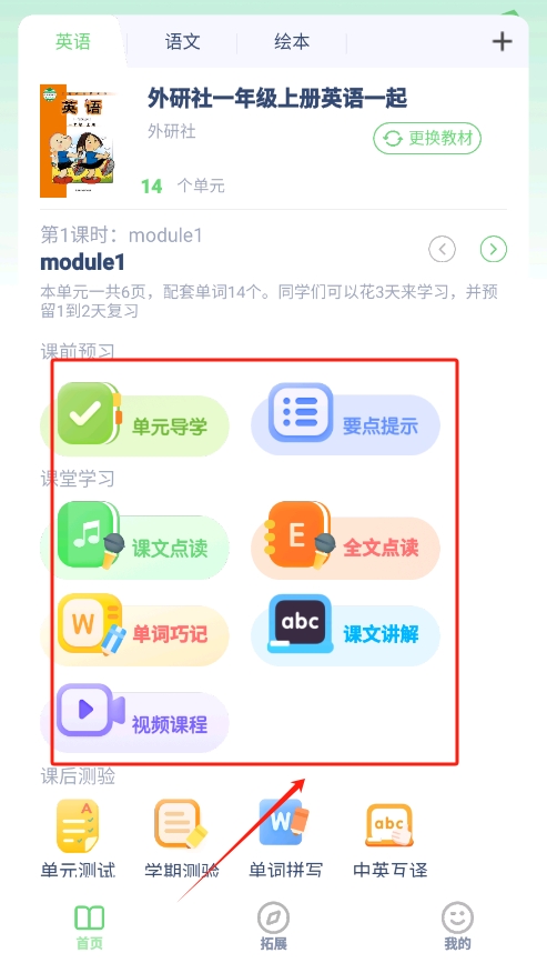 1、首先下载安装新标准英语点读,登录后将进入主界面,便于找到所需教材和学习内容。