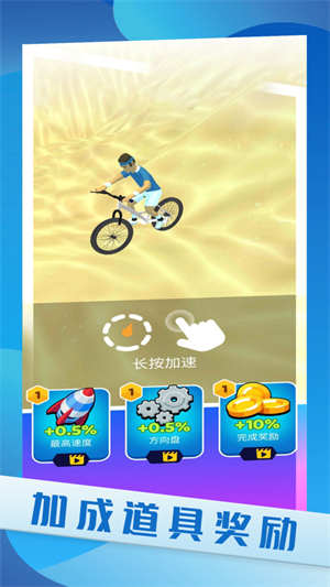 3、玩家可以在游戏中拥有很多挑战需要完成,可以获得很多奖励,购买自己喜欢的自行车。
