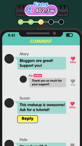 1、玩家将在游戏中扮演美食博主,挑战各种美食关卡;