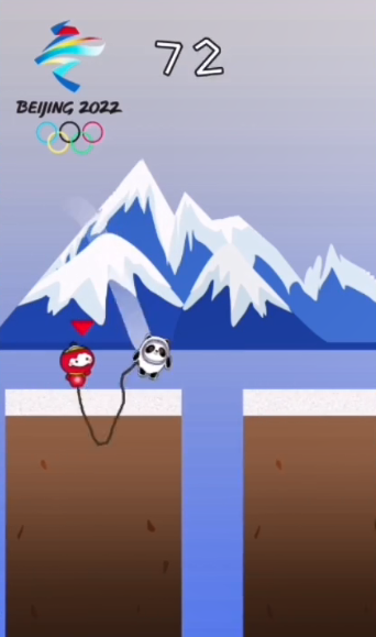 1、在游戏中两个吉祥物会用绳子绑起来跳跃,面对各种陷阱,一定要控制好跳跃距离;