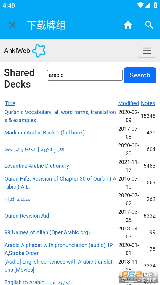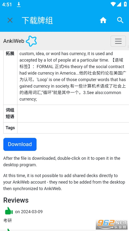 5.download下载,下载完成后,AnkiDroid会自动导入牌组。