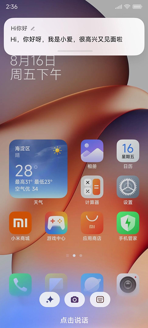 超级小爱是小米公司推出的全生态AI智能助手,全新升级搭载大模型能力,融合语音视觉等多模态交互技术,具备语音识别、智能家居控制、生活助手等核心功能,为用户提供高效便捷的个性化服务。它的唤醒动画与系统界面深度融合,支持在任何页面场景通过多种方式唤醒交流,新增屏幕识别和视觉交互能力,能以富有表现力的声音陪用户畅聊,做贴心虚拟好友,是连接全生态设备的智能助手。