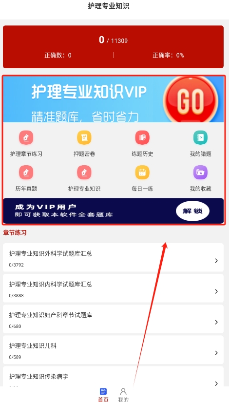 1、题库系统,提供全面的护理知识题目,涵盖基础及应用型知识,帮助考生系统性掌握核心内容。