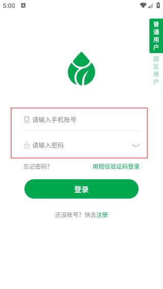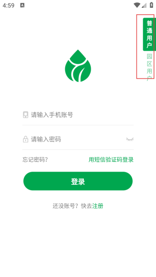 2、在登录页,确认用户类型(普通用户/园区用户),准备输入账号密码。