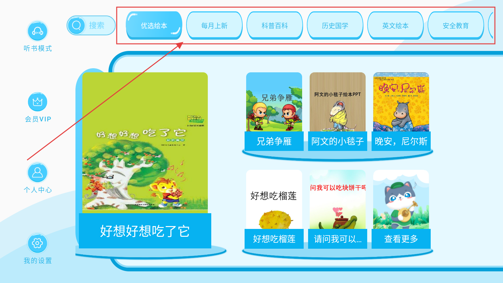 1、多维度内容体系:超5000册精选有声绘本,覆盖情商培养、英语启蒙等10+分类,按年龄分级推荐,支持关键词搜索与分类浏览。