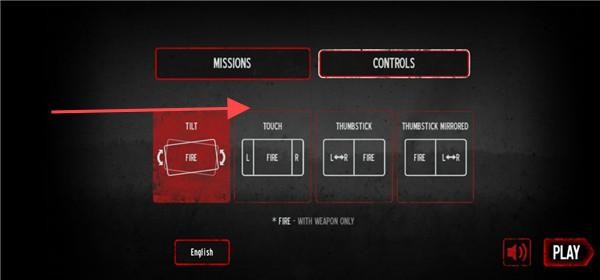 1、进入游戏玩家需要在TILT、TOUCH、THUMBSTICK、THUMBSTICK MIRRORED四种操作方式。