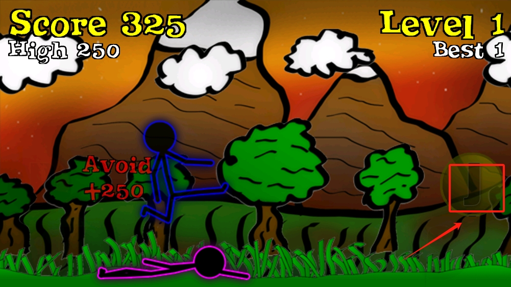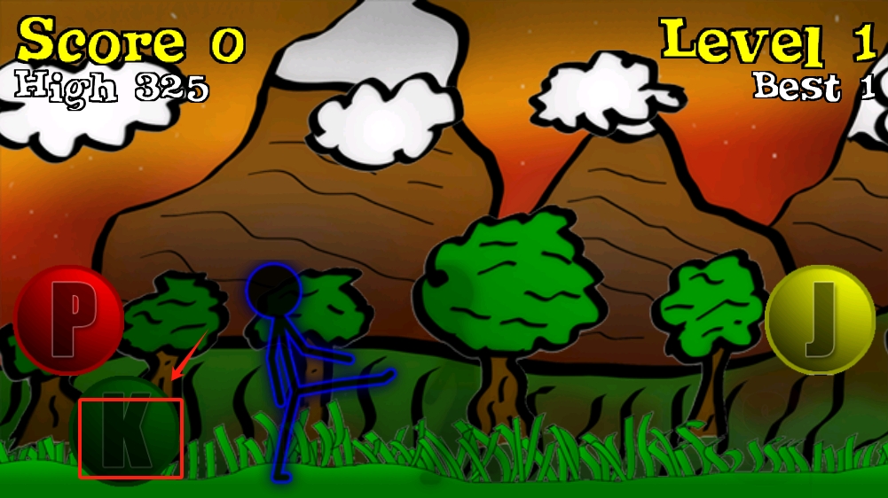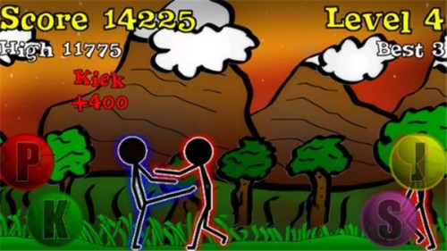 3、点击左下角按钮,可控制角色踢倒敌人。