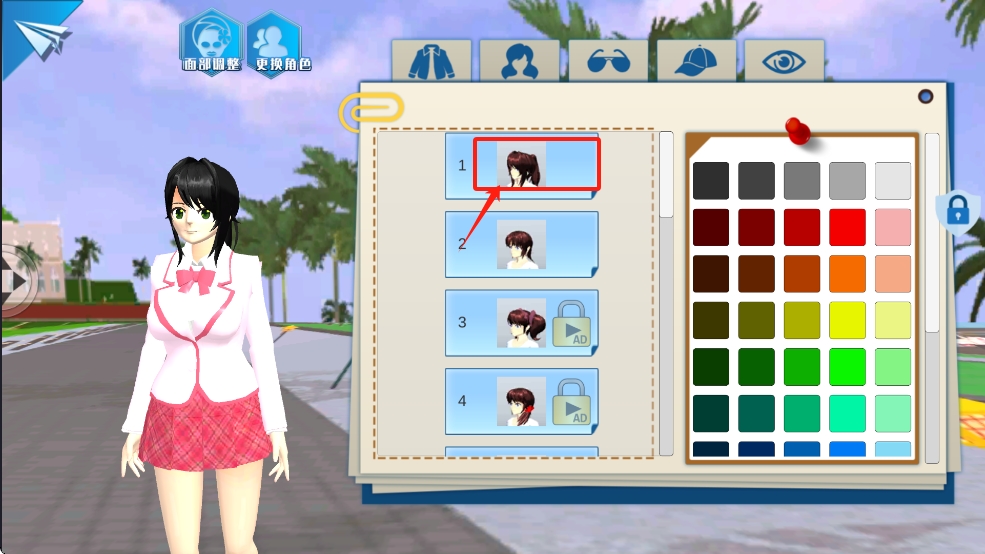 2、点击角色的发型图标,选择并解锁不同的发型样式。