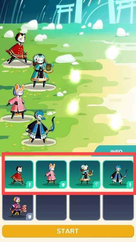 1、在角色选择界面,根据喜好从展示的角色中挑选合适的角色,点击【START】开启冒险。