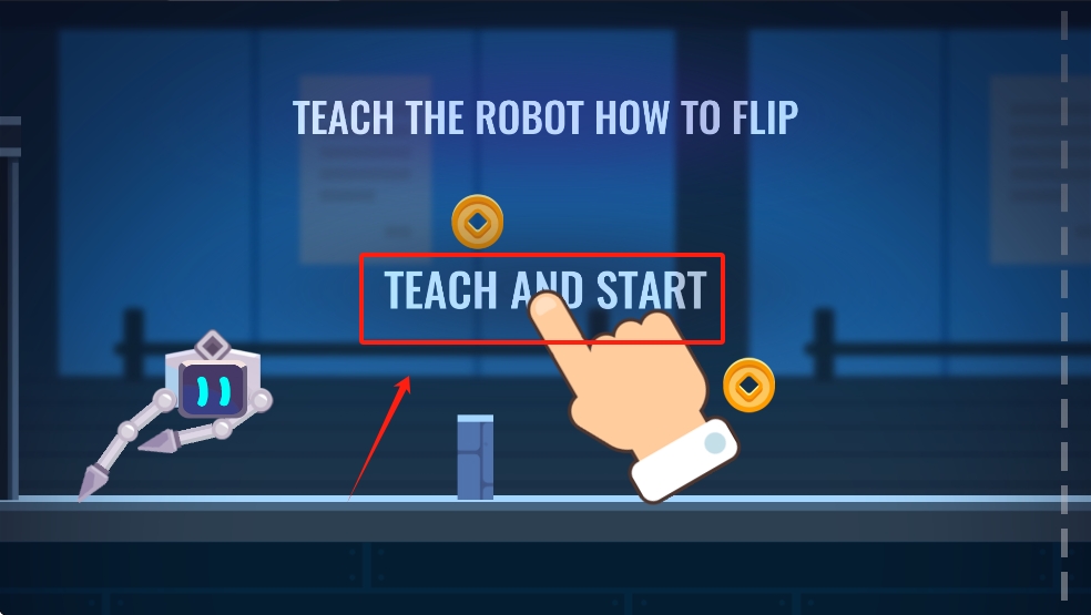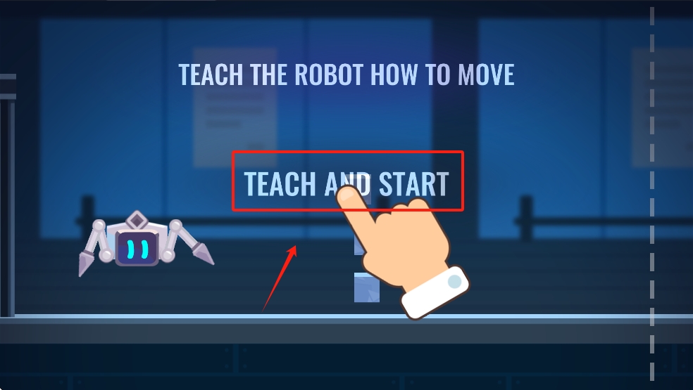 1、点击 “TEACH AND START” 按钮,开始教导机器人移动方式。